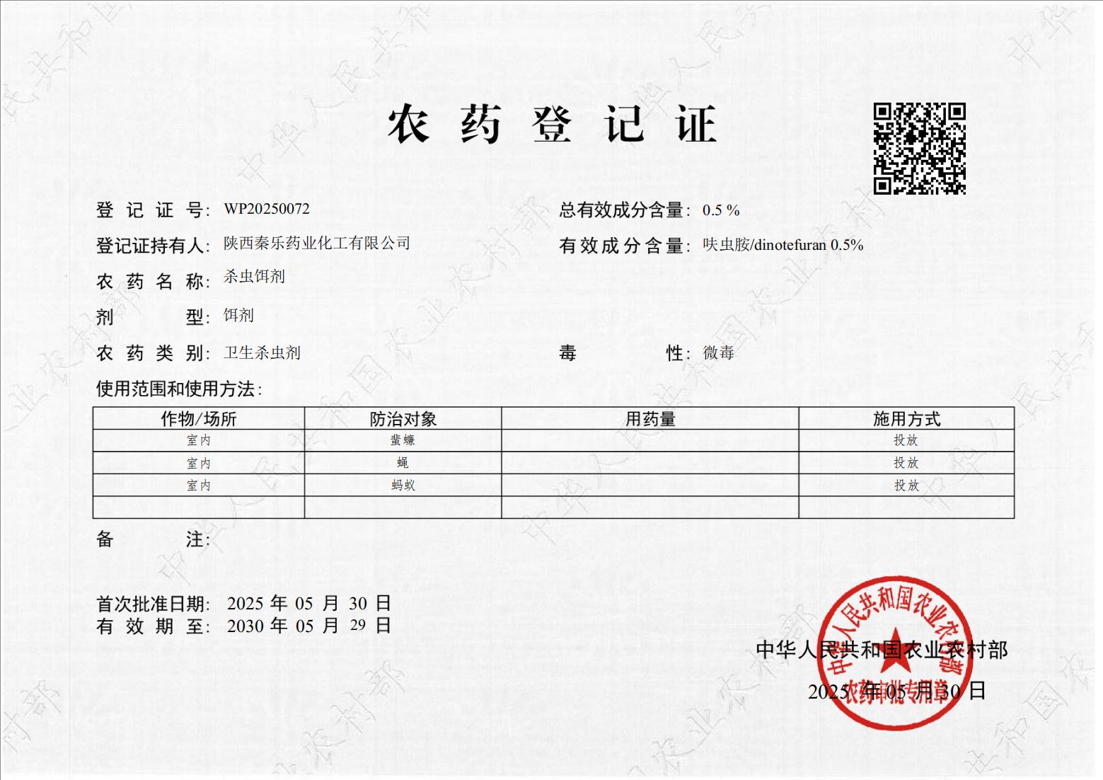 展望未来,陕西秦乐药业化工有限公司将继续秉承品质、服务、科技、创新的核心理念、深耕 行业领域,不断优化产品与服务质量,为农业生产和卫生防疫事业提供更加优质的产品与服务,书 写更加辉煌的篇章!